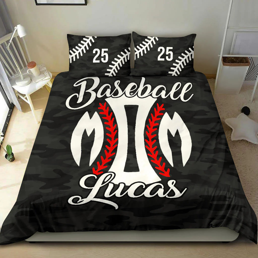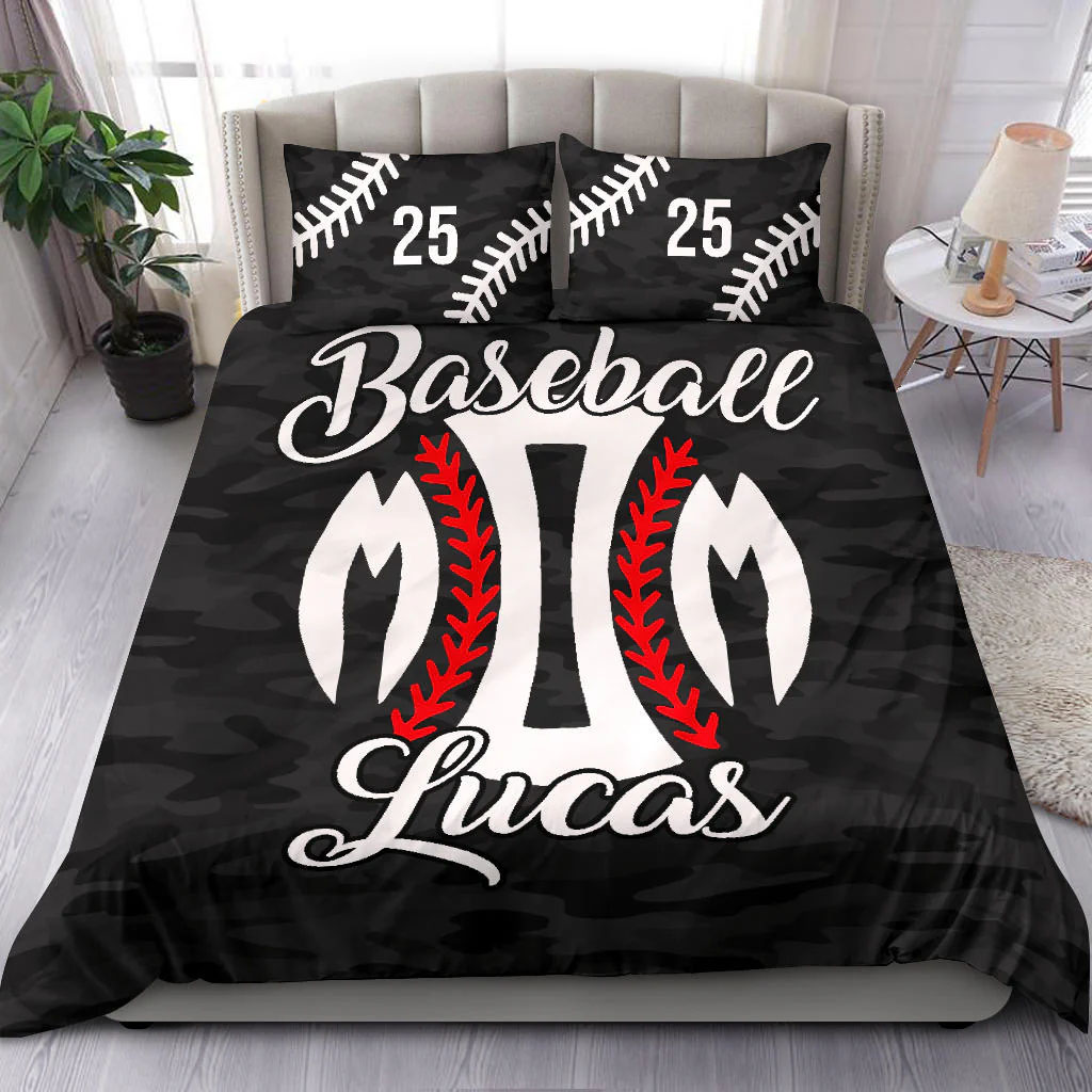 Baseball Mom custom bedding set – 4 pcs personalized duvet cover, bed sheets, pillow shams