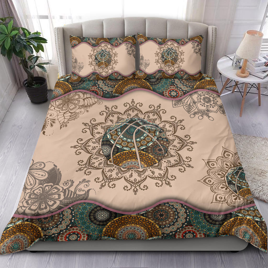 Basketball Ball Boho custom bedding set – Personalized duvet cover, bed sheets, pillow shams
