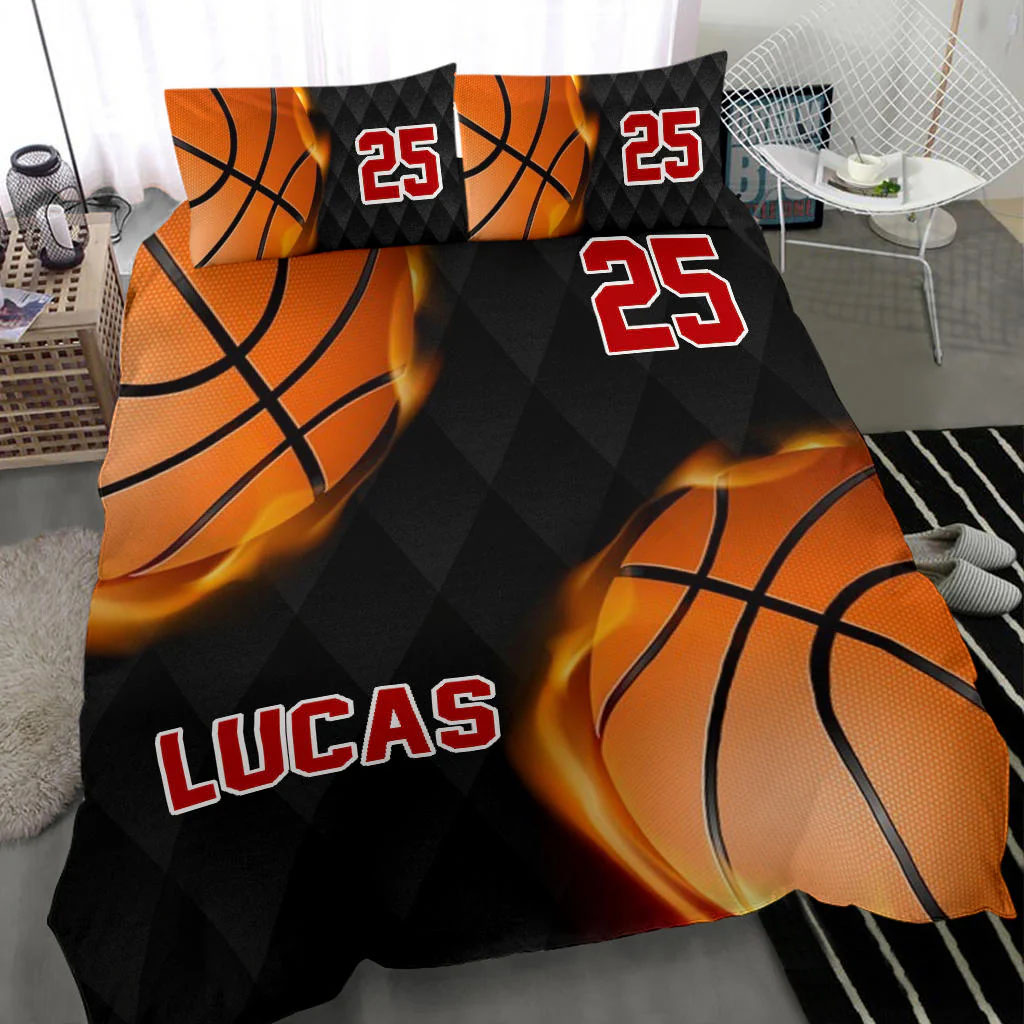 Basketball Ball Fire custom bedding set – Personalized duvet cover, bed sheets, pillow shams