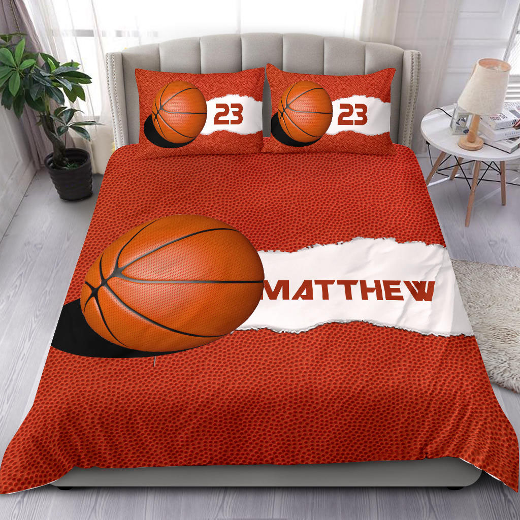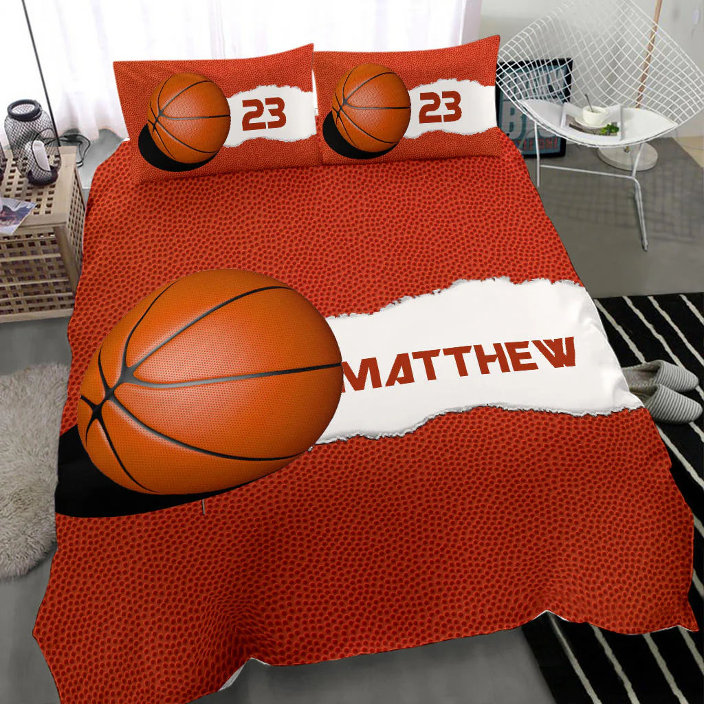 Basketball Ball Orange custom bedding set – Personalized duvet cover, bed sheets, pillow shams