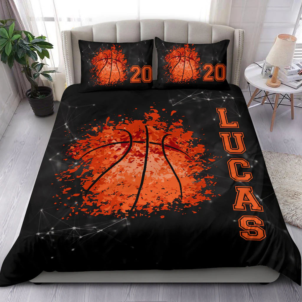Basketball Ball Watercolor bedding set – 4 pcs Personalized duvet cover, bed sheets, pillow shams