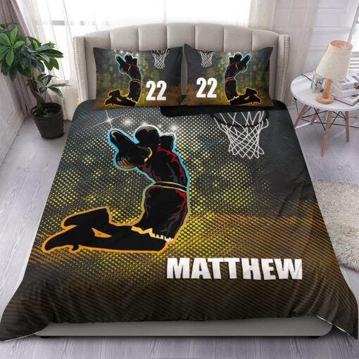 Basketball Boy Player Slam Dunk custom bedding set – Personalized duvet cover, bed sheets, pillow shams
