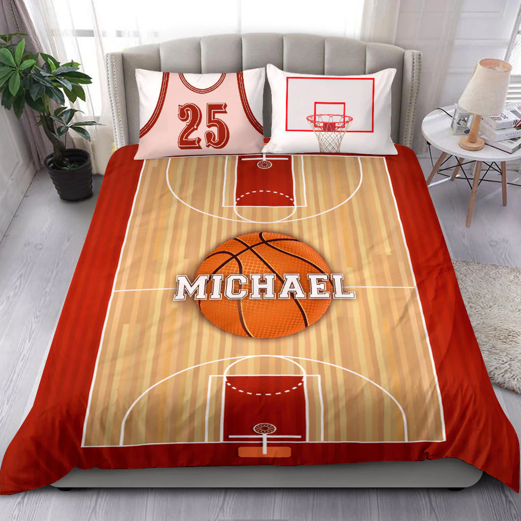 Basketball Court Field custom bedding set – Personalized duvet cover, bed sheets, pillow shams