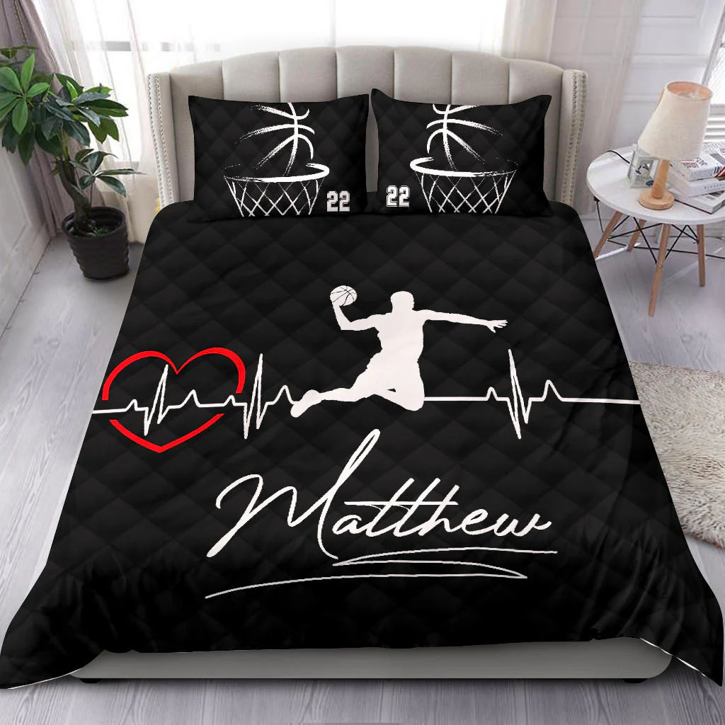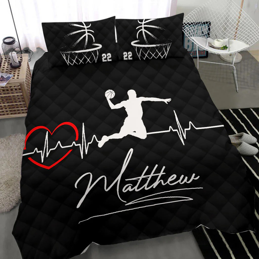 Basketball Heart Beat Slamdunk custom bedding set – Personalized duvet cover, bed sheets, pillow shams