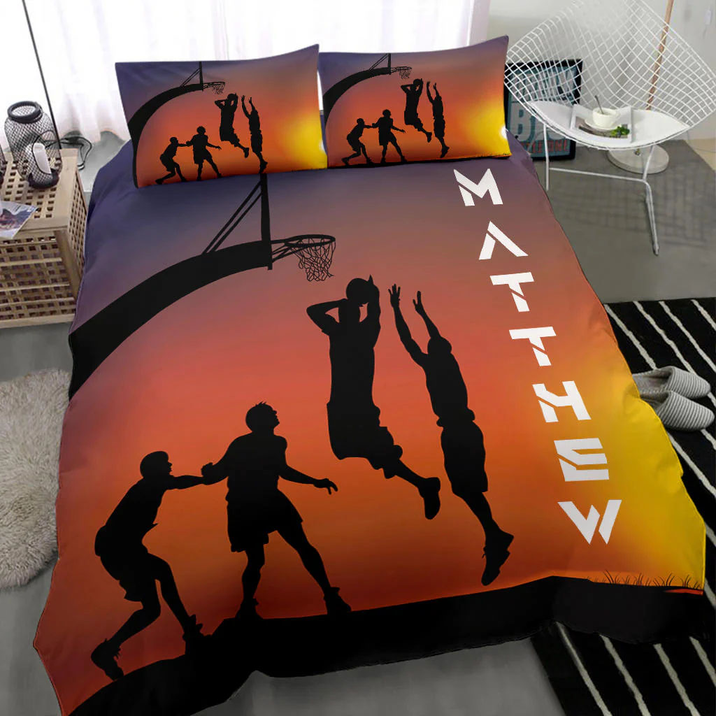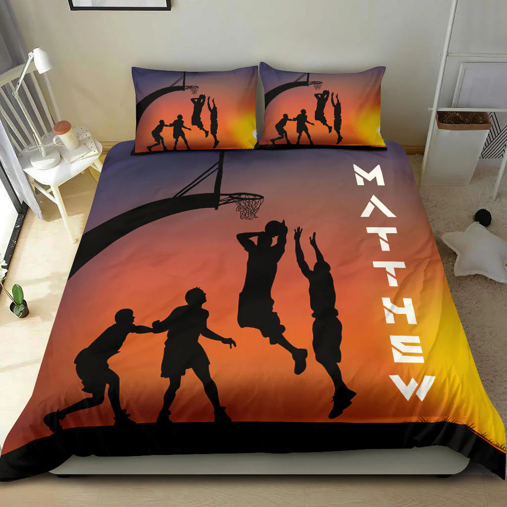 Basketball Sun Set custom bedding set – Personalized duvet cover, bed sheets, pillow shams