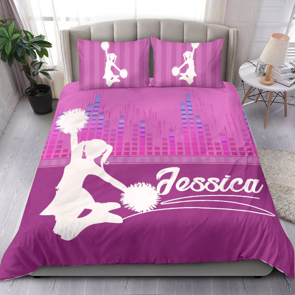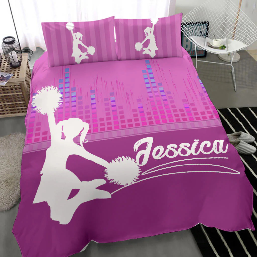Cheerleading custom bedding set – Personalized Cheerleader duvet cover, bed sheets, pillow shams