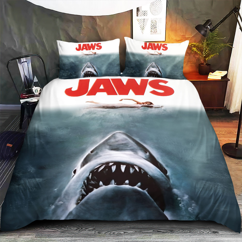 Custom Jaws bedding set – Personalized duvet cover, bed sheets, pillow shams