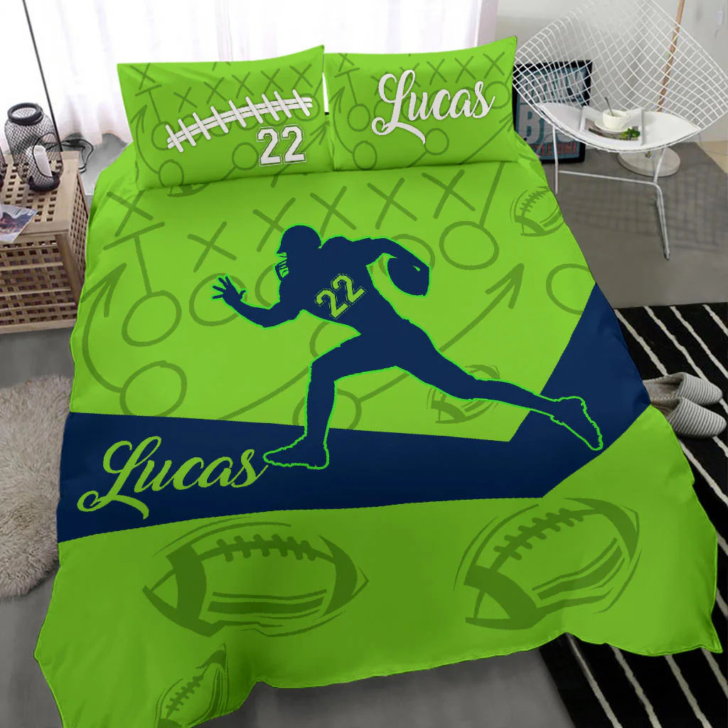 ABOUT THIS FOOTBALL GREEN CUSTOM BEDDING SET