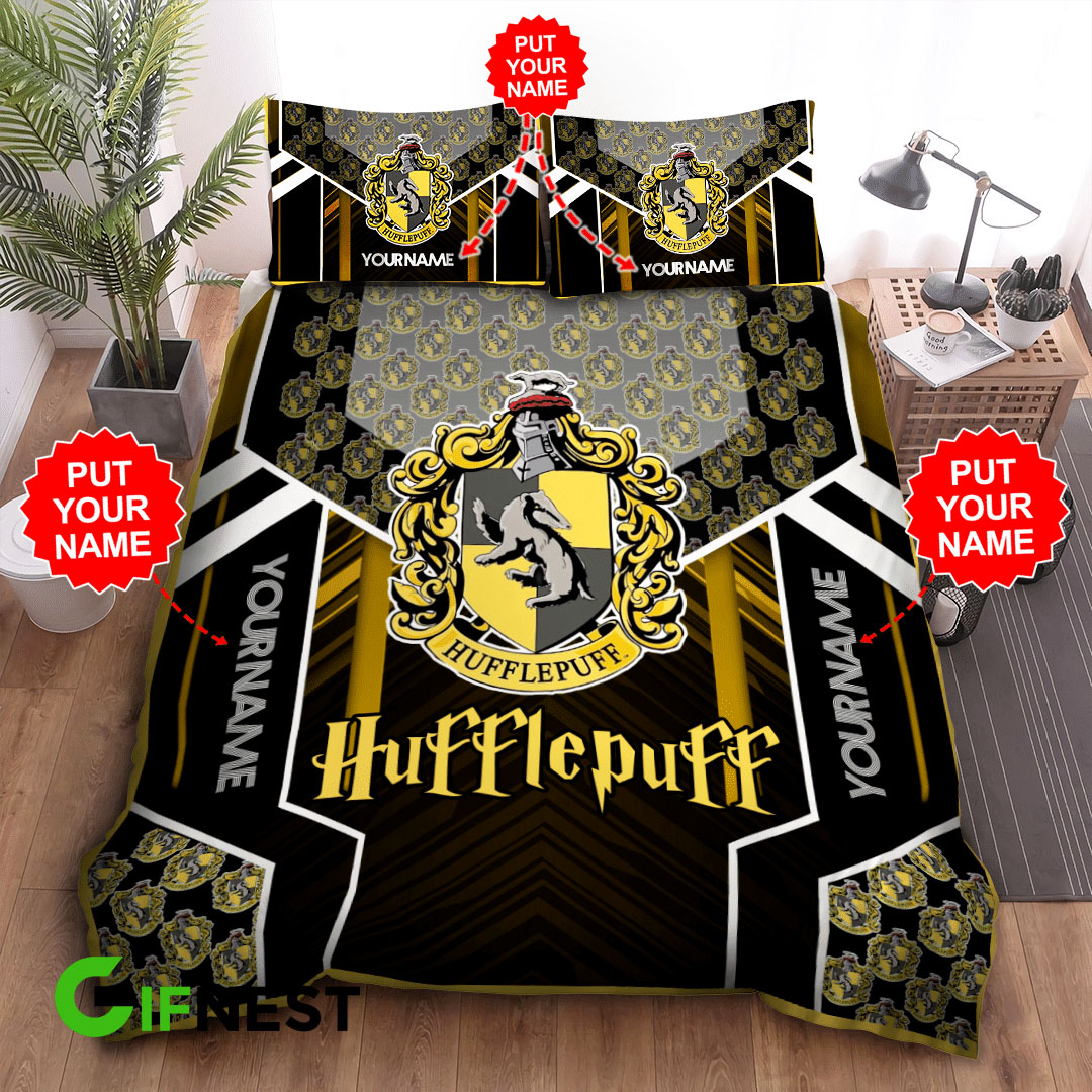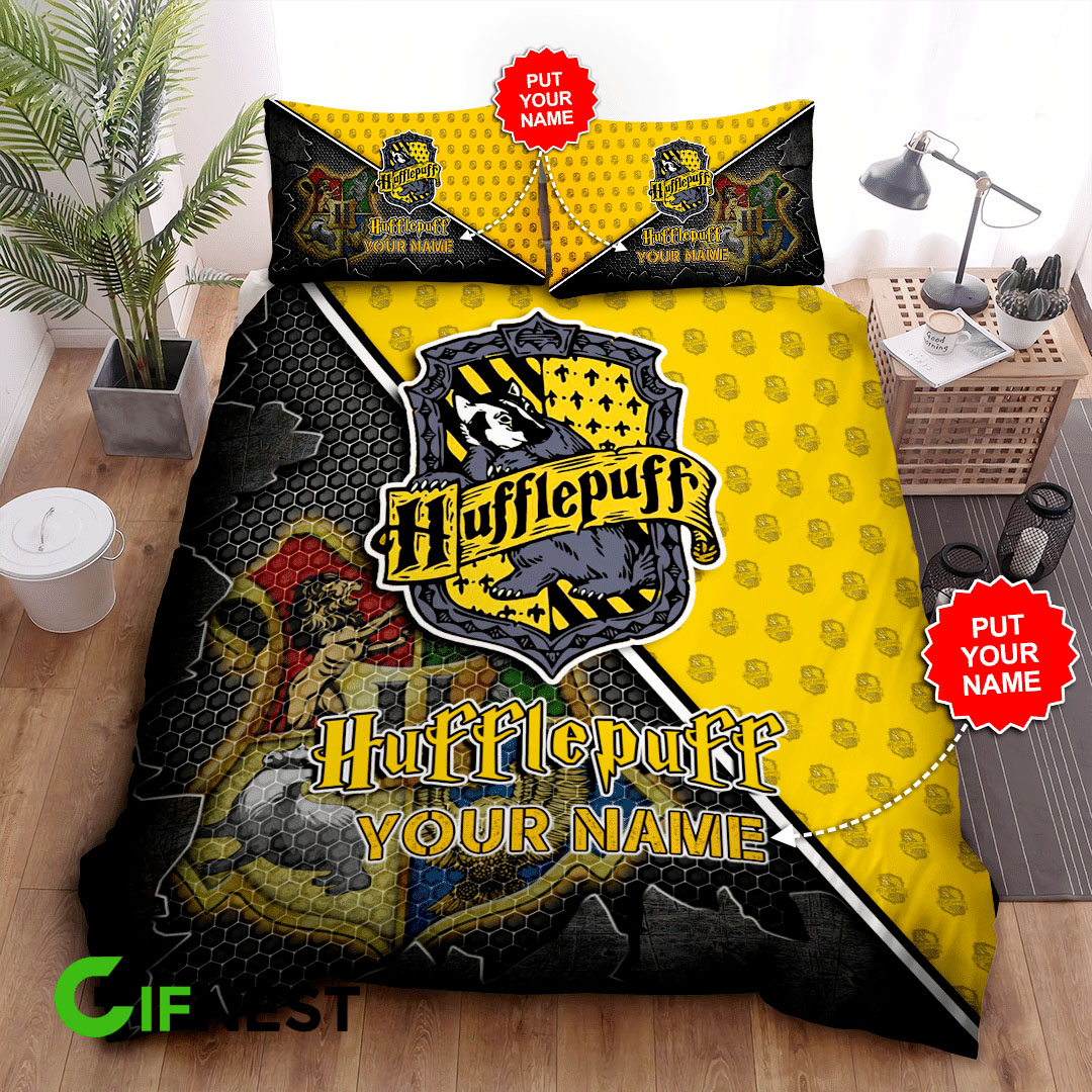 Hufflepuff custom bedding set – Personalized Hufflepuff duvet cover, bed sheets, pillow shams