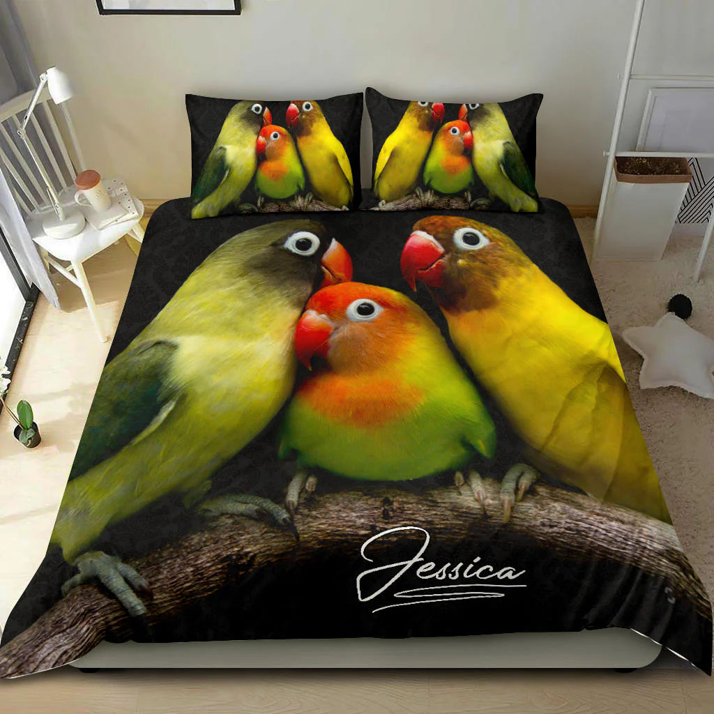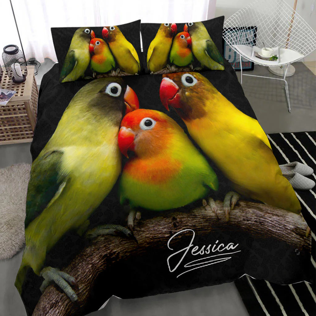 Parrot Sun Conure custom bedding set – Personalized duvet cover, bed sheets, pillow shams