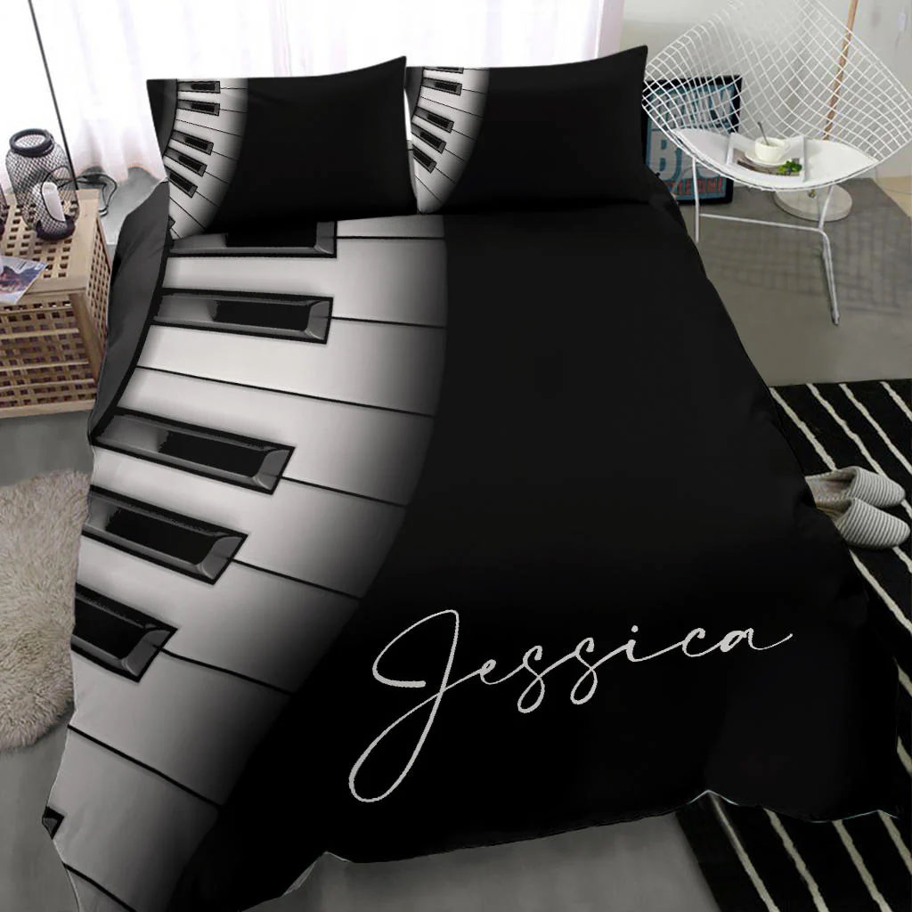 Piano Keyboard custom bedding set – Personalized duvet cover, bed sheets, pillow shams