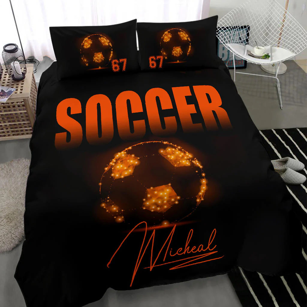 Soccer Ball Light Orange bedding set – 4 pcs personalized duvet cover, bed sheets, pillow shams