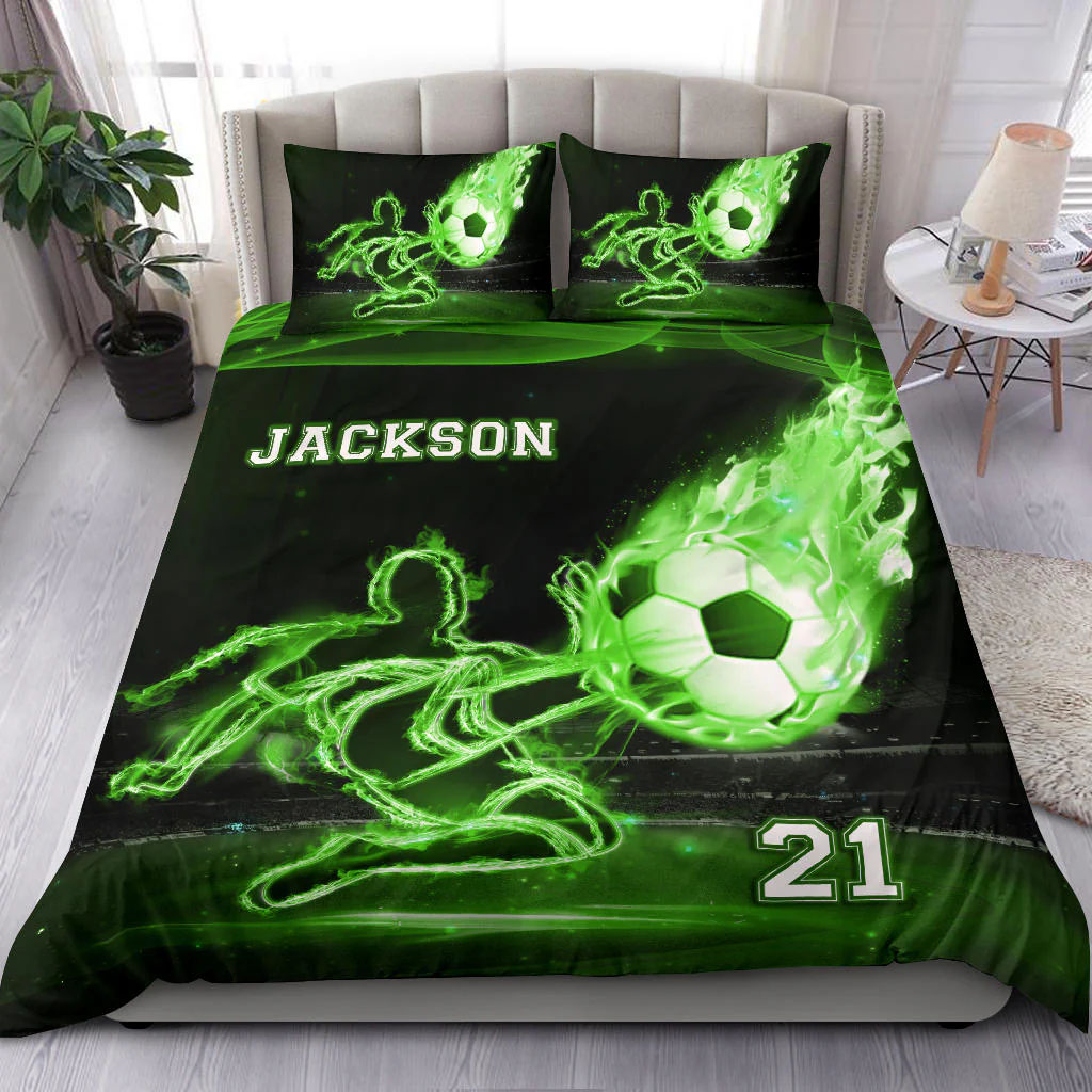 Soccer Boy custom bedding set – 4 pcs personalized duvet cover, bed sheets, pillow shams