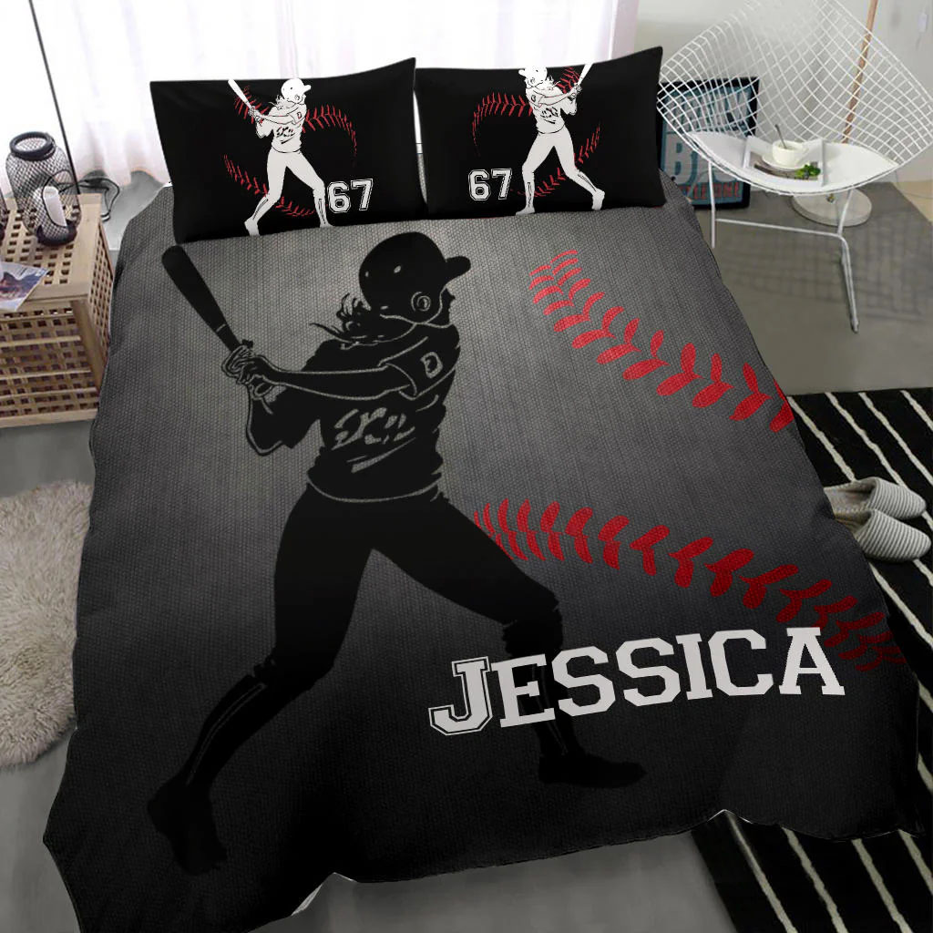 Softball Batter Girl custom bedding set – Personalized duvet cover, bed sheets, pillow shams