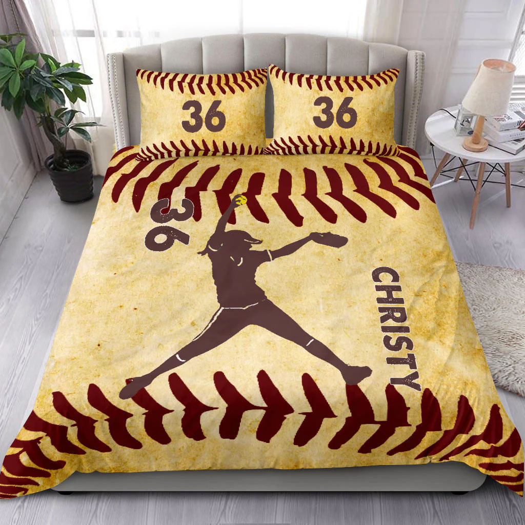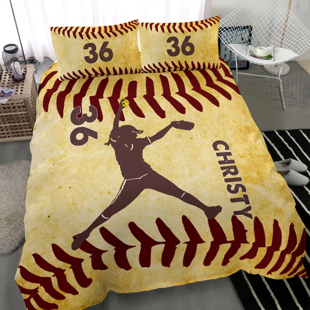 Softball Pitcher Girl Player custom bedding set – Personalized duvet cover, bed sheets, pillow shams