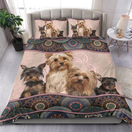 Yorkshire Yorkie custom bedding set – 4 pcs Personalized Pet Dog duvet cover, bed sheets, pillow shams